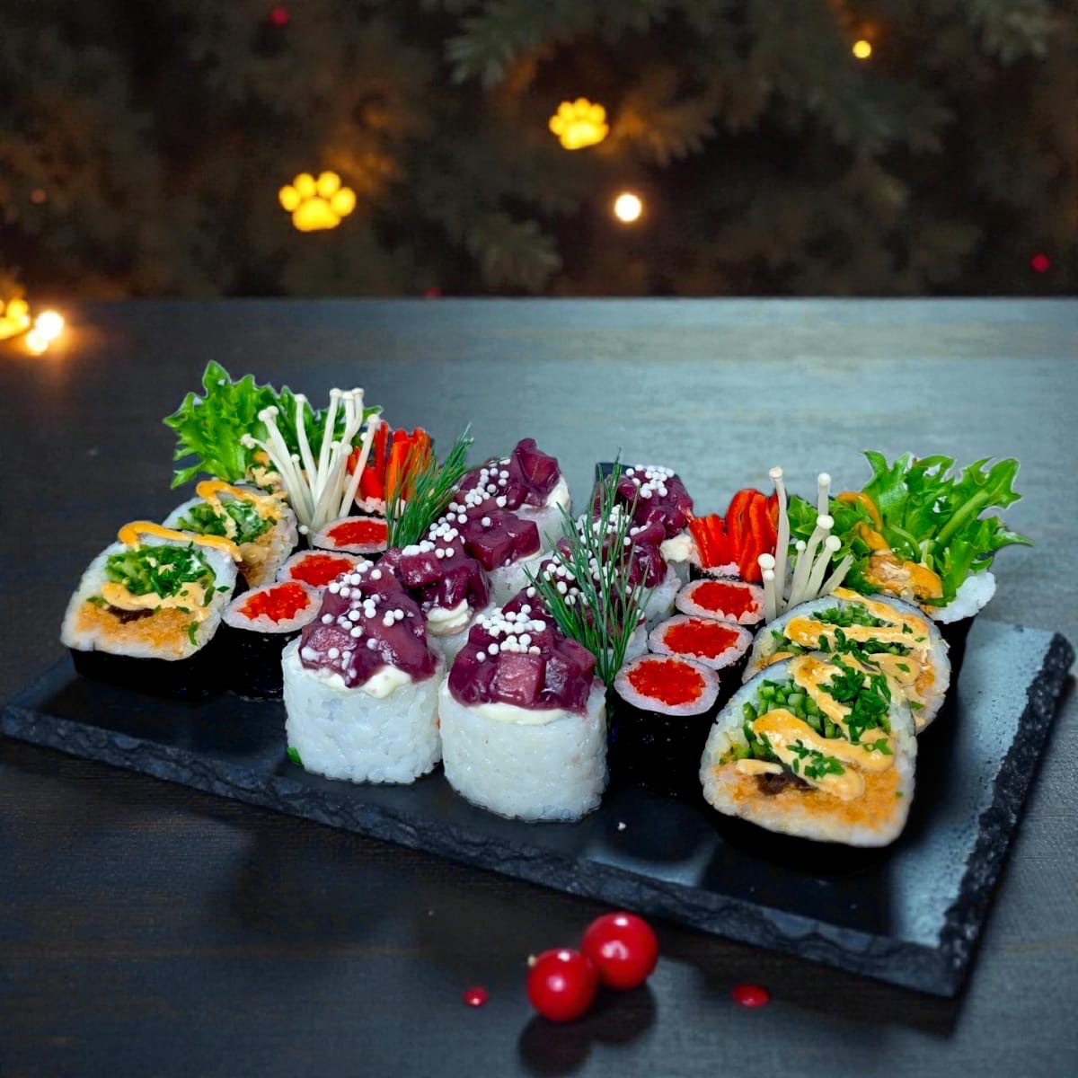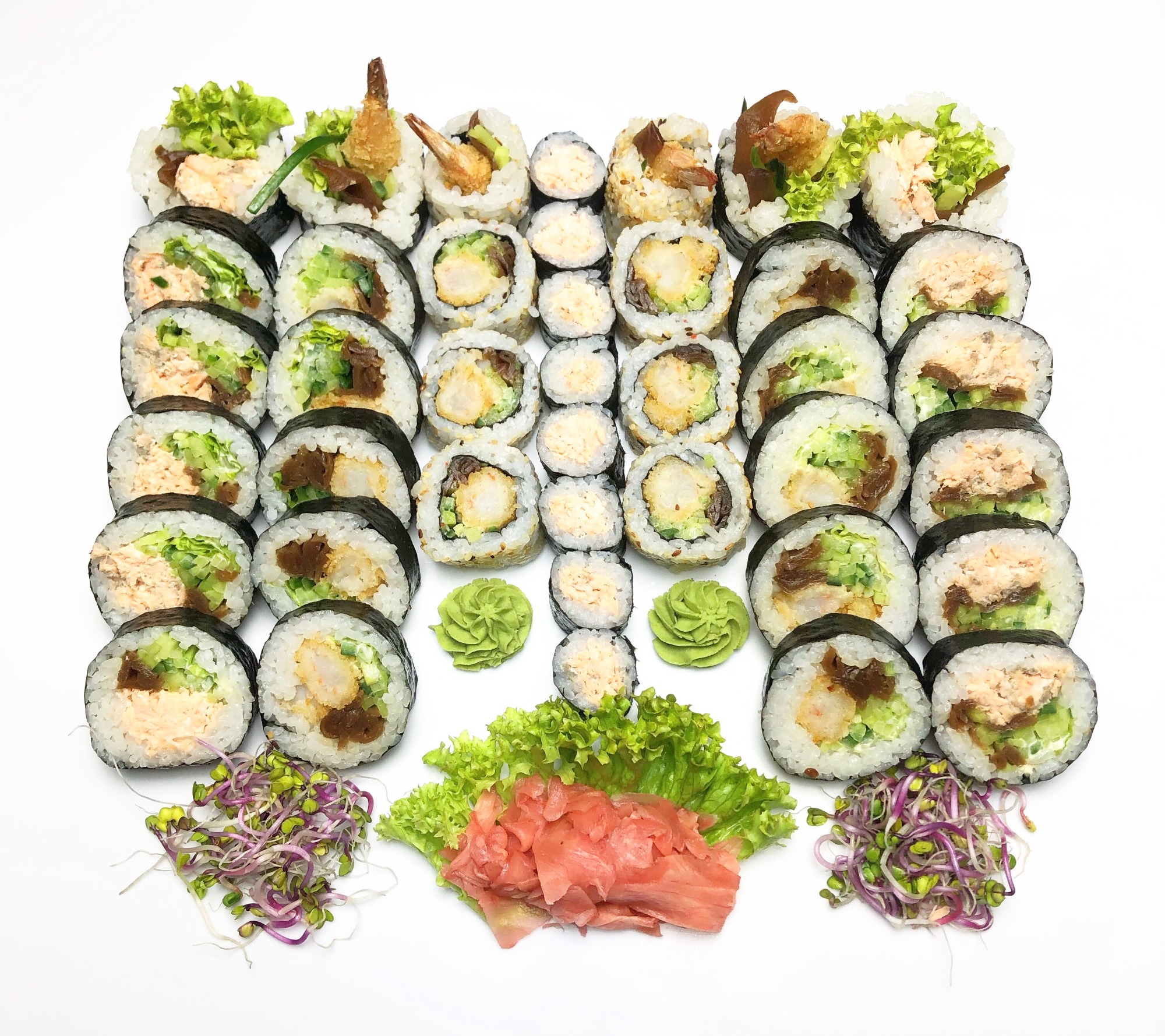 maślana pieczona*, sałata, majonez, ogórek, kanpyo