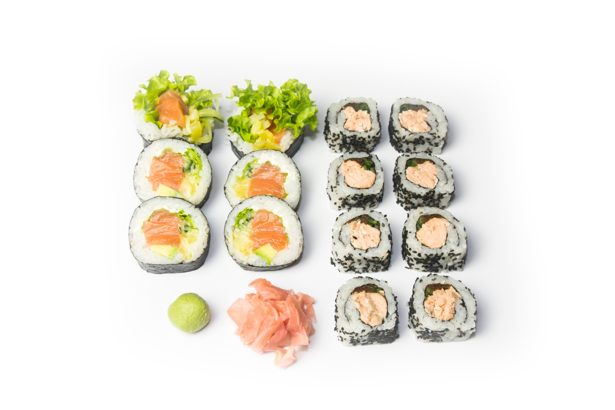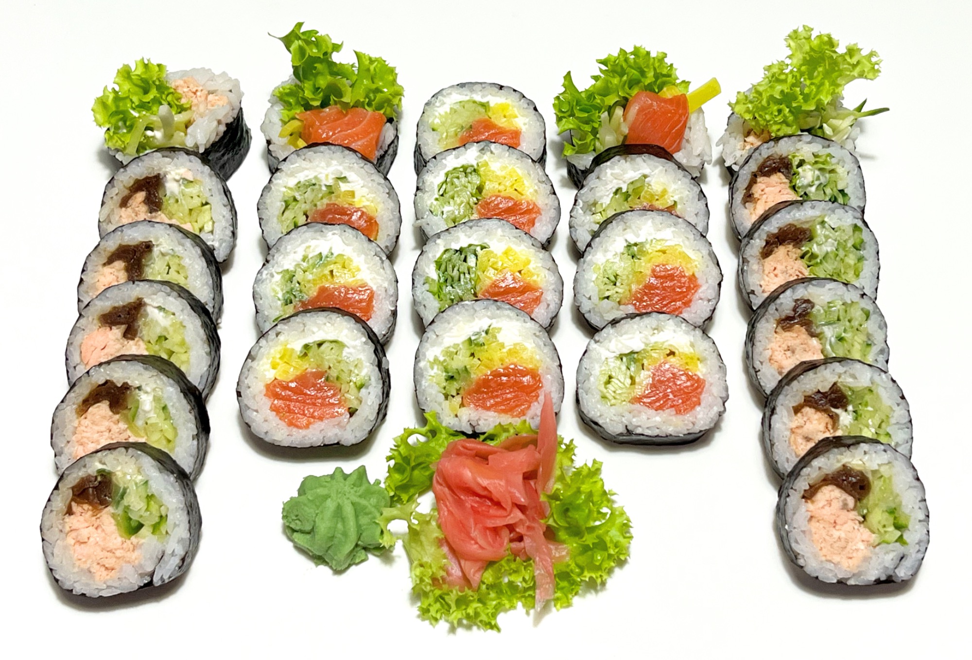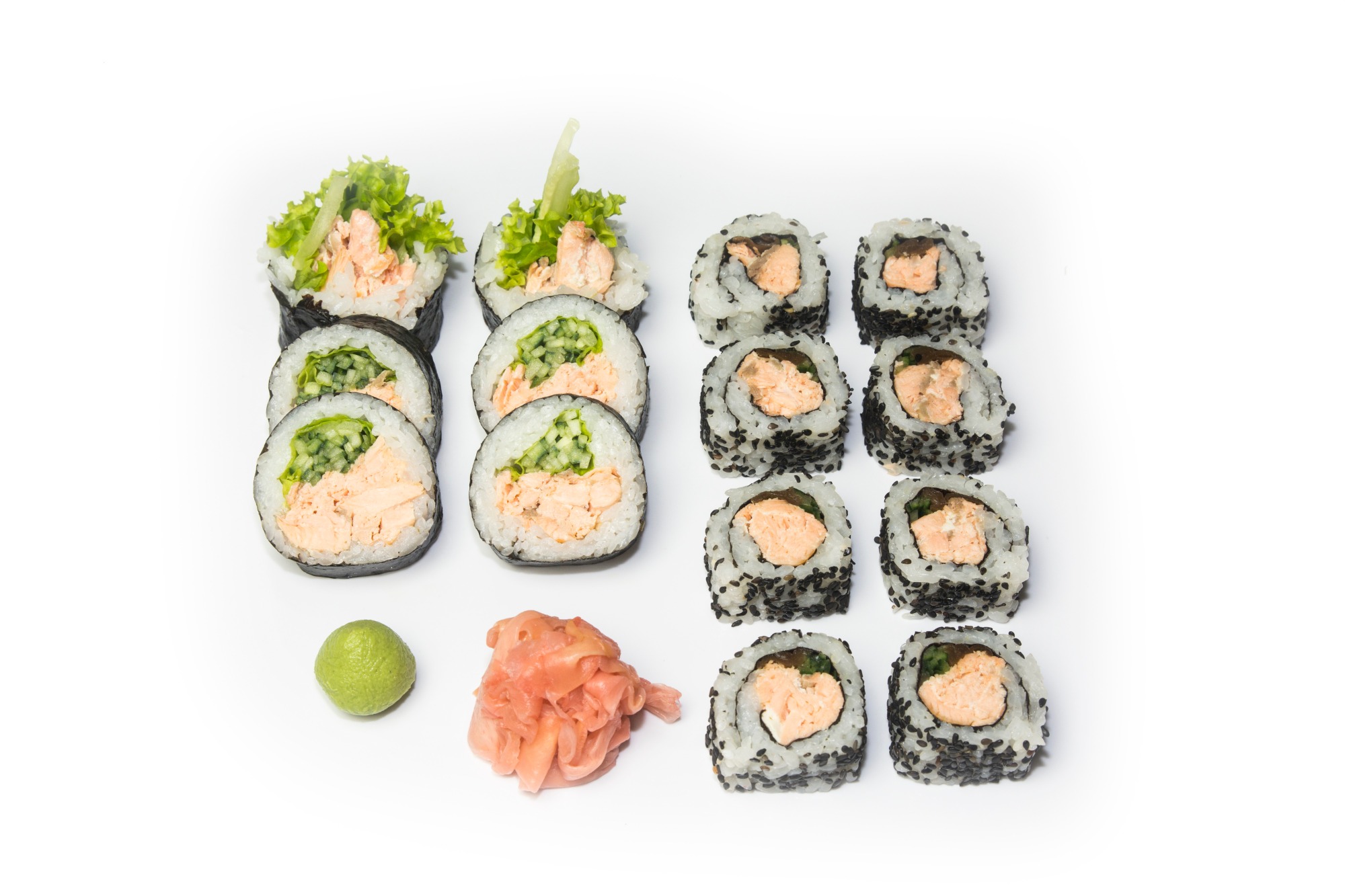łosoś pieczony, sałata, majonez, ogórek, kanpyo -