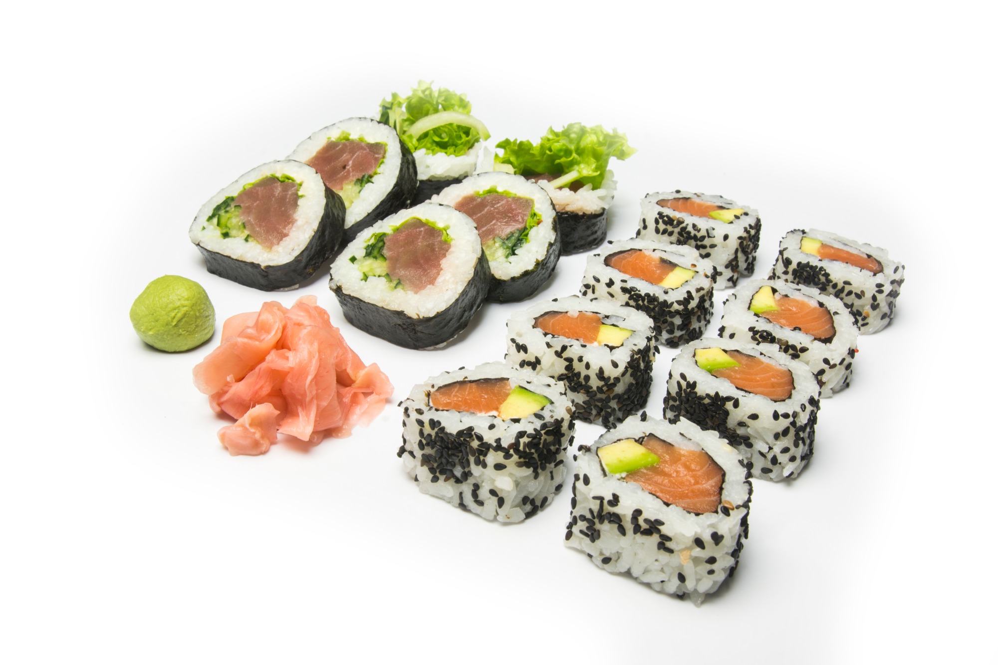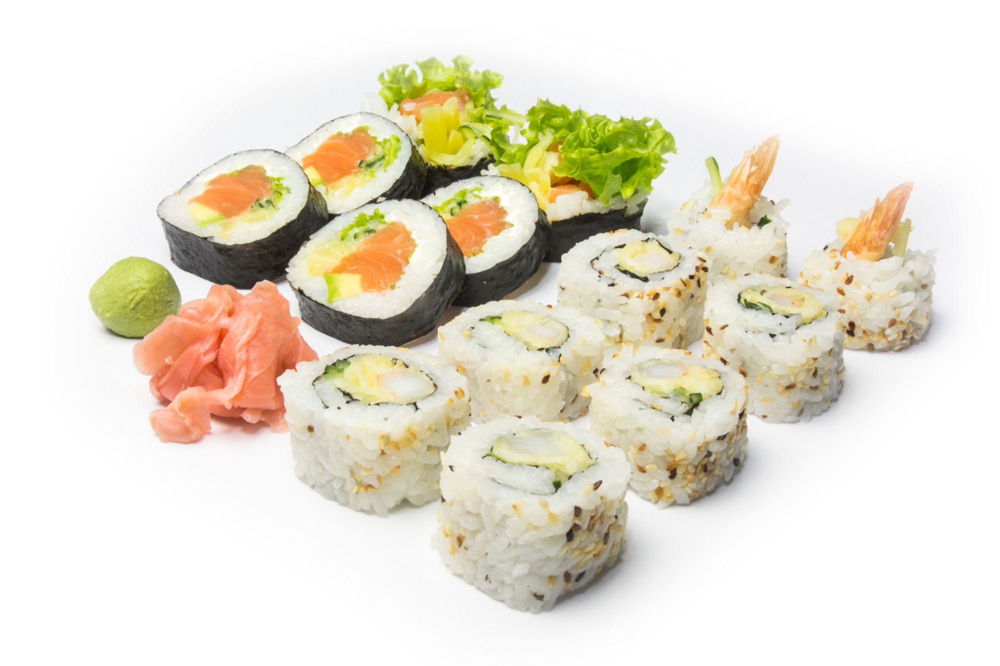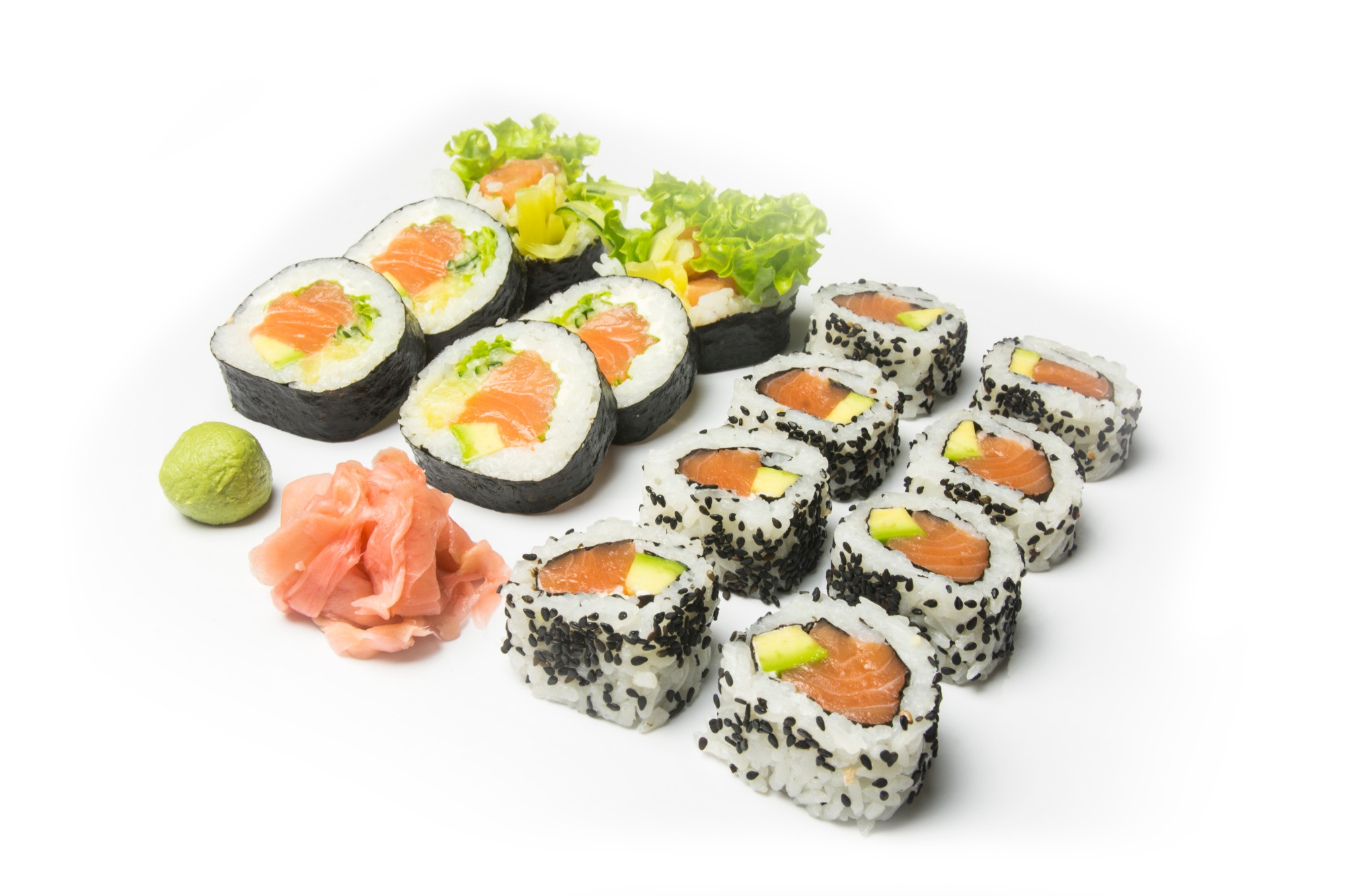 łosoś surowy, sałata, serek Philadelphia, ogórek, awokado -