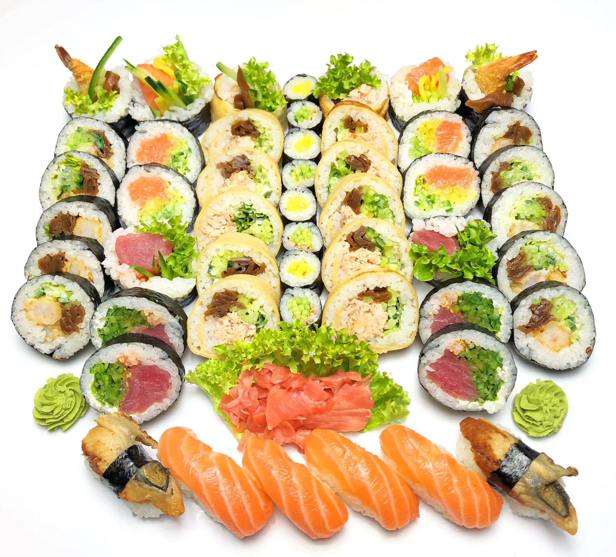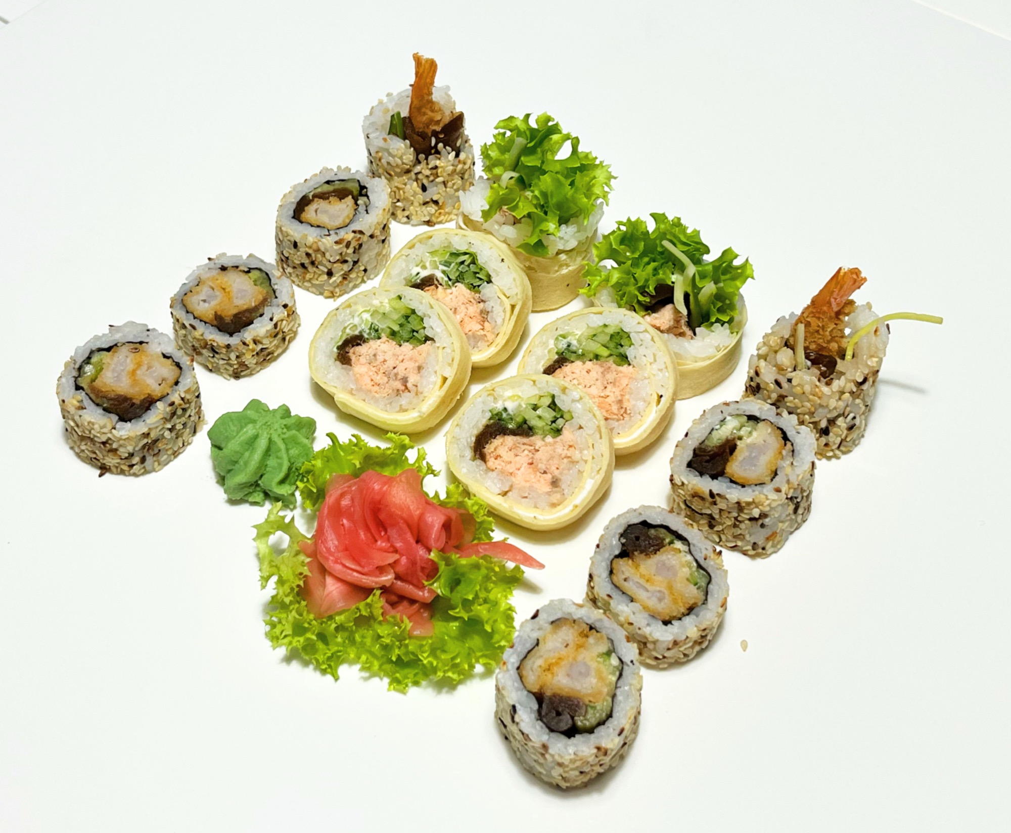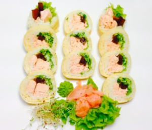 12xFutomaki z łososiem pieczonym owiniętym japońskim naleśnikiem Tamago